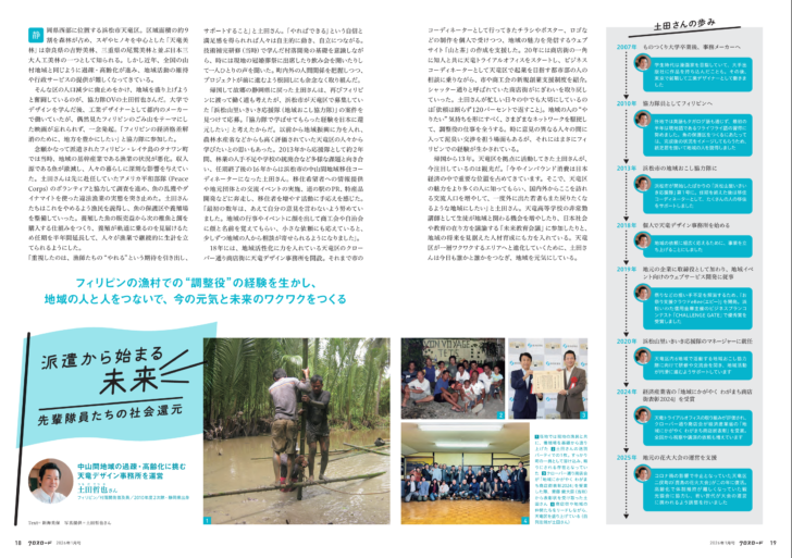 協力隊としての派遣をきっかけに、人や地域と関わりながら続けてきた活動を、「派遣から始まる未来」というテーマでまとめてもらっています。